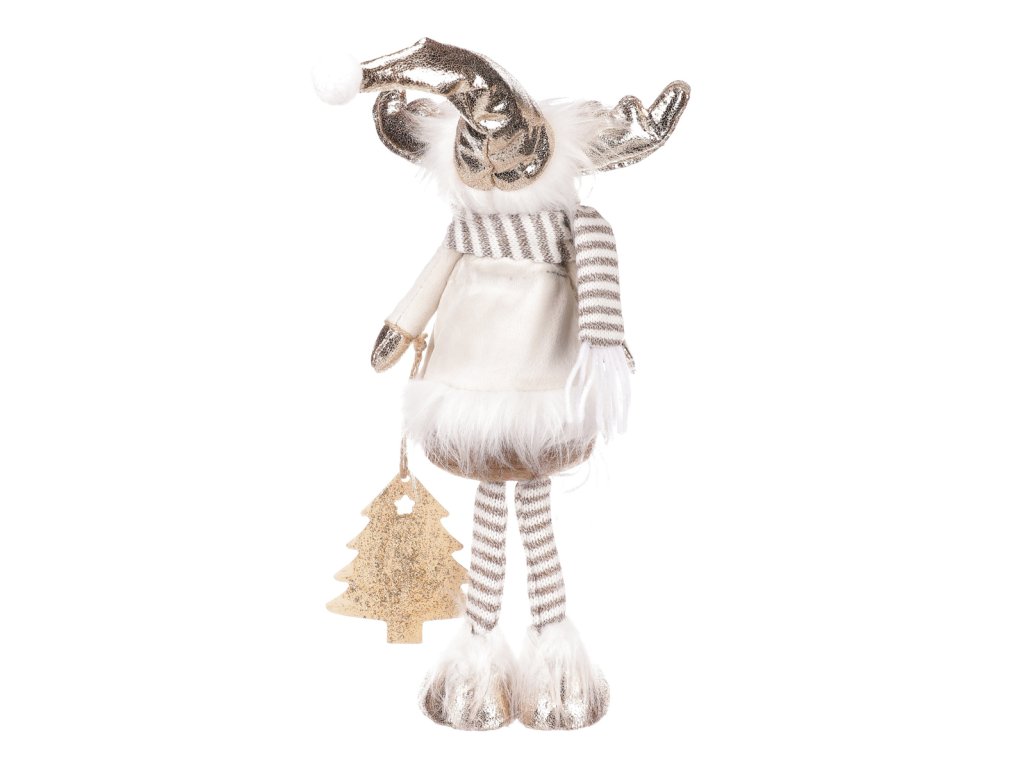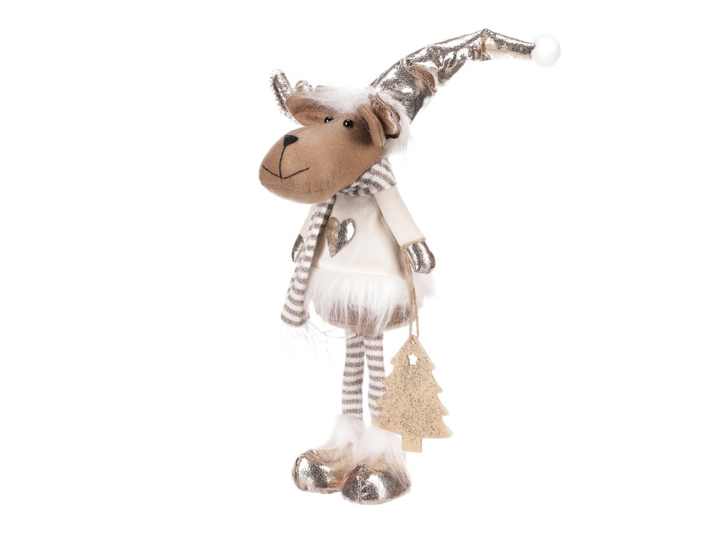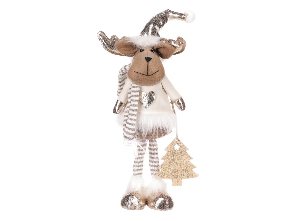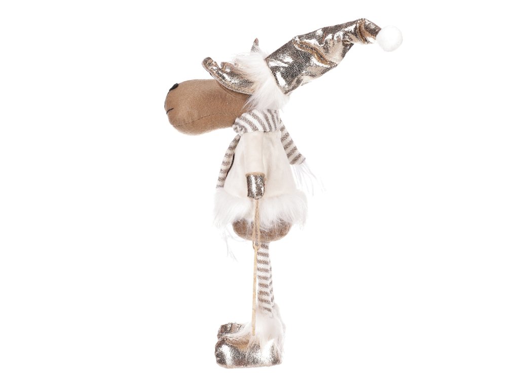 Tento okouzlující látkový sob je skvělým neživým společníkem do vašeho domova obzvláště během vánočních svátků. Jeho hravá podoba dovede každého okamžitě vtáhnou do sváteční nálady a pohody. Obléknutý v teplém zimním oblečení a teplou špičatou čepicí na hlavě, působí dojmem, že akorát teď přijel za vámi z mrazivého severu. Jeho široký úsměv a rozverná očka nám sdělují, že nám chce předat svou dobrou náladu a radost. Jeho dlouhé tenké nožky a robustní teplé boty mu dodávají komický vzhled, který zaručeně vyvolá úsměv na tváři každého, kdo jej uvidí. Sob, zvíře spojené se severskou zimou, přináší v tomto provedení do vašeho interiéru nejen estetickou hodnotu, ale i veselého parťáka. Rozveselí vás všechny, včetně všech hostů a návštěvníků, svým neodolatelným vzhledem a nakažlivým humorem.