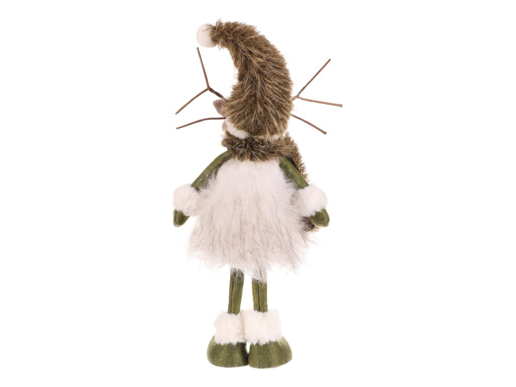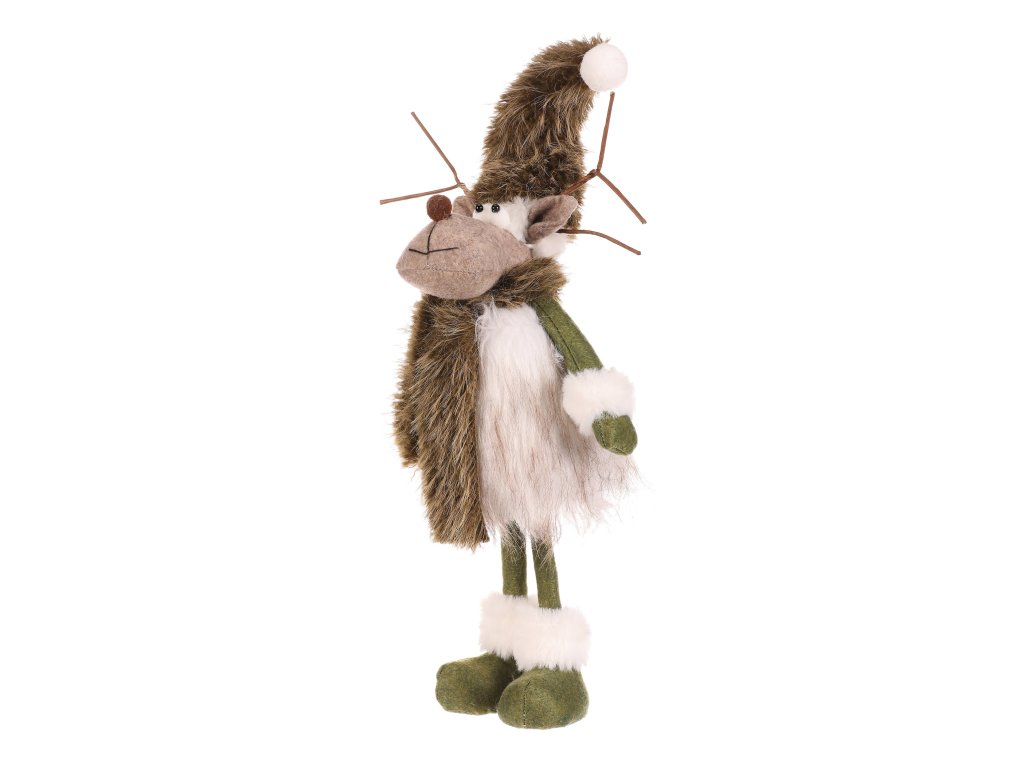 Látkový sob v zeleno-bílém teplém oblečení vnese do vašeho domova veselou a hřejivou atmosféru. Jeho roztomilý obličej, špičatá čepice s bambulí a celkově veselý vzhled zútulní každý interiér. Tato látková figurka, hebká na dotek, se skvěle hodí jako dekorace na poličku, stůl nebo ji můžete umístit i na pohovku nebo gauč, kde bude vaším hravým společníkem.