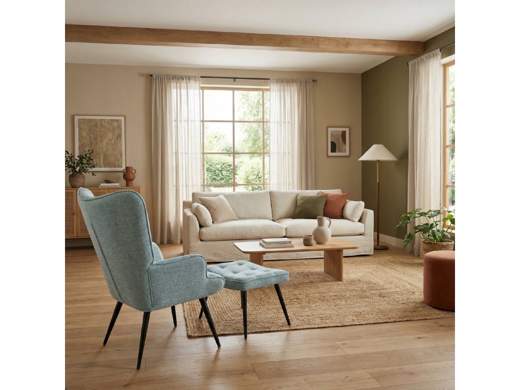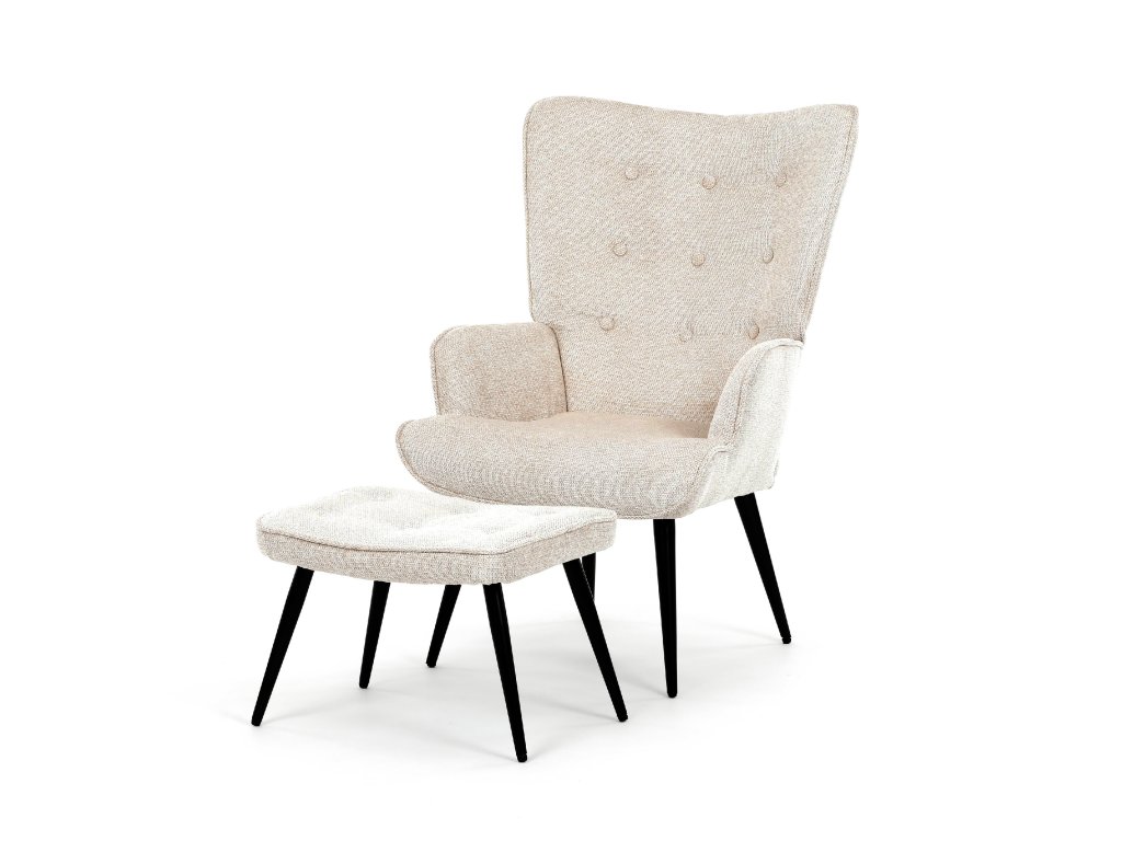 Relaxační křeslo s podnožkou je potaženo vodoodpudivou prémiovou látkou, která usnadňuje údržbu a zvyšuje odolnost vůči polití. Pevné černé kovové nohy zajišťují stabilitu a dlouhou životnost. Křeslo nabízí pohodlné opěradlo s integrovanými područky, které podporují správnou ergonomii při relaxaci. Bonusový taburet s odpovídajícím čalouněním umožňuje pohodlné opření nohou a doplňuje celkový komfort. Design s jemným prošitím a mírně zaoblenými tvary vytváří příjemný vizuální efekt vhodný do moderních i klasických interiérů.
