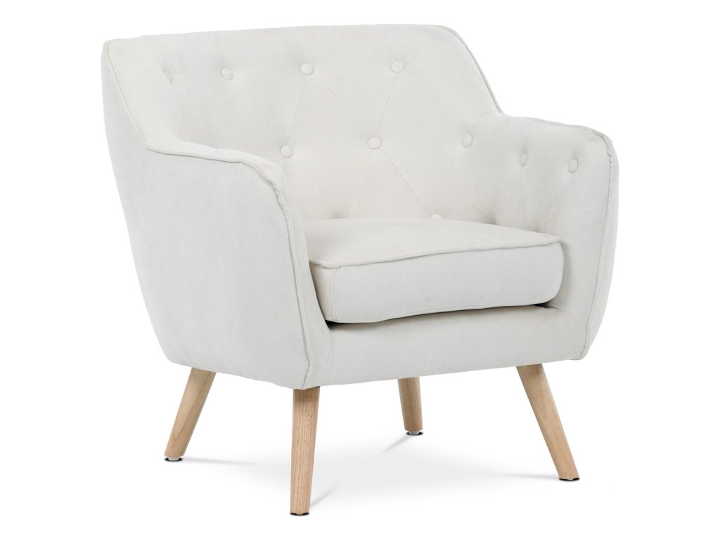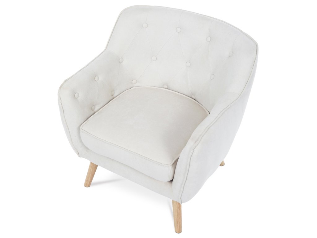 Relaxační křeslo s vysokým podsedákem je dokonalým doplňkem Vašeho obývacího pokoje nebo ložnice. Křeslo je vyrobeno z bílé hladké látky, která dodává tomuto kousku nábytku vzdušnost a eleganci. Jeho přírodní dřevěné nohy přidávají skandinávský nádech a příjemnou atmosféru do Vašeho interiéru.