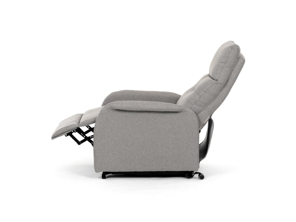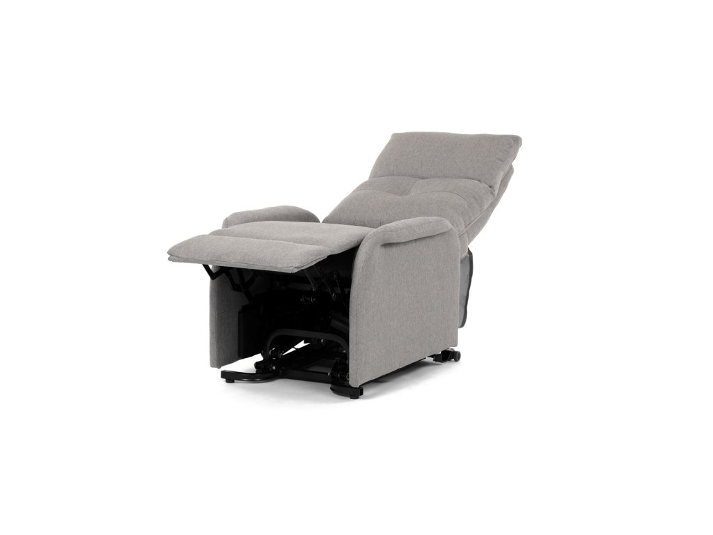 Elegantní elektrické polohovací křeslo v provedení z hladké látky nabízí dokonalé pohodlí a moderní design.