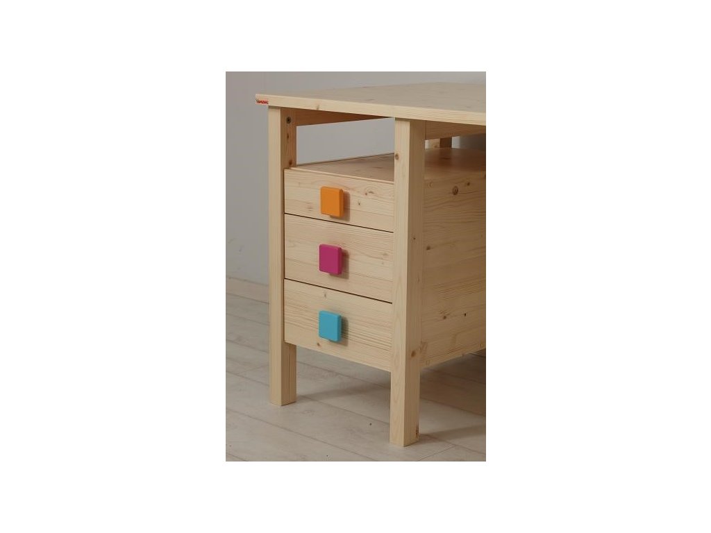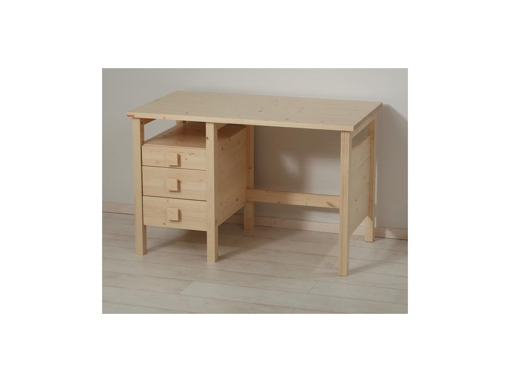 Psací stůl z masivu v novém designu má tři zásuvky a velkou pracovní desku, to je ideální volba do dětského i studentského pokoje.