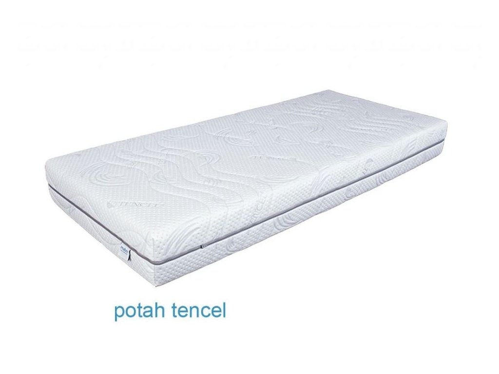 Tencel - potah s vláknem z Tenclu, ten je extrahován z dřevní hmoty a má mnohem lepší absorpční vlastnosti než bavlna. Potah je dělitelný zipem na dvě poloviny. Plošný prošev PES rounem. Potah je pratelný při 40ºC. Výška matrace v potahu Tencel (↨ 26cm)