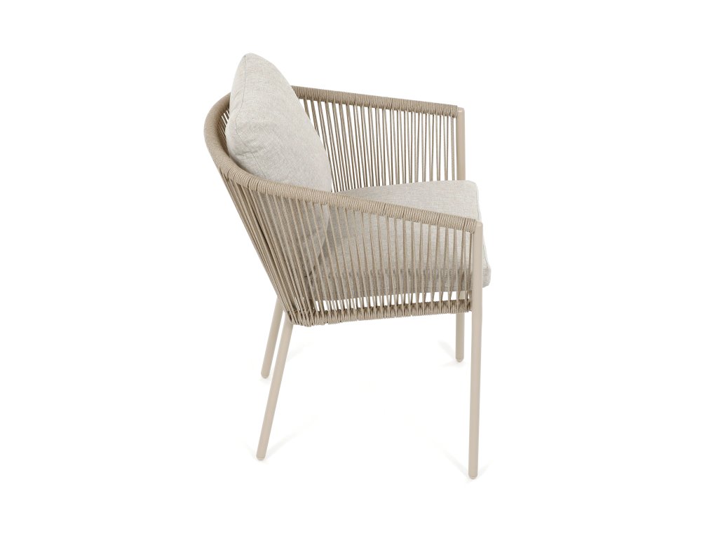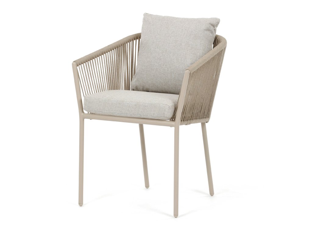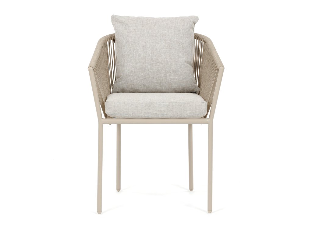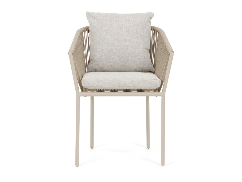 Zahradní židle s hliníkovou konstrukcí v krémovém odstínu nabízí kombinaci lehkosti a pevnosti vhodnou pro venkovní použití. Sedák a opěradlo jsou potažené rychleschnoucí látkou, která je voděodolná a odolná vůči povětrnostním vlivům, což zajišťuje snadnou údržbu a dlouhou životnost i při častém venkovním používání. Design židle je doplněn pohodlnými polštáři v béžové barvě, které zvyšují komfort sezení. Konstrukce je stabilní a zároveň lehká, což usnadňuje manipulaci a přemísťování. Rozměry a nosnost jsou přizpůsobeny běžným potřebám zahradního nábytku.