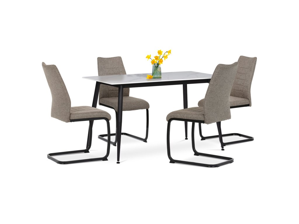 Židle je čalouněná jemnou krémovou látkou, která je měkká na dotek a odolná proti opotřebení.