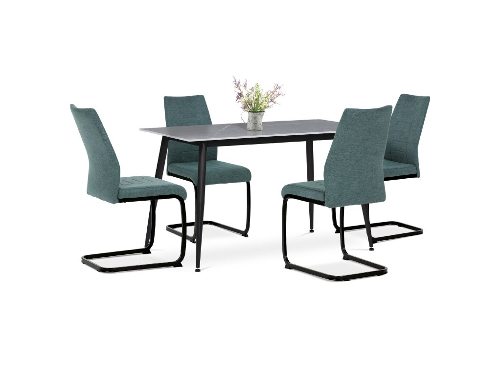 Jídelní stůl s rozkládací se stabilní kovovou podnoží v černé barvě. Odolný a snadno udržovatelný materiál. Stůl je vystaven na prodejně
